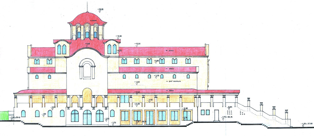 Semnul Crucii va fi puternic pus în valoare volumetrică în planul acoperişului şi în ansamblul panoramic al mănăstirii. Pornind de la nivelul terenului şi urcând spre platforma de intrare în biserică, privind în sus spre înălţimea edificiului sprijinit de brâul de coloane, acest peristil care îl înconjoară, privirea credincioşilor veniţi să se roage aici va cuprinde în acelaşi timp biserica şi cerul. Acest „tot” va forma atunci Acropola Creştin Ortodoxă a Dobrogei.